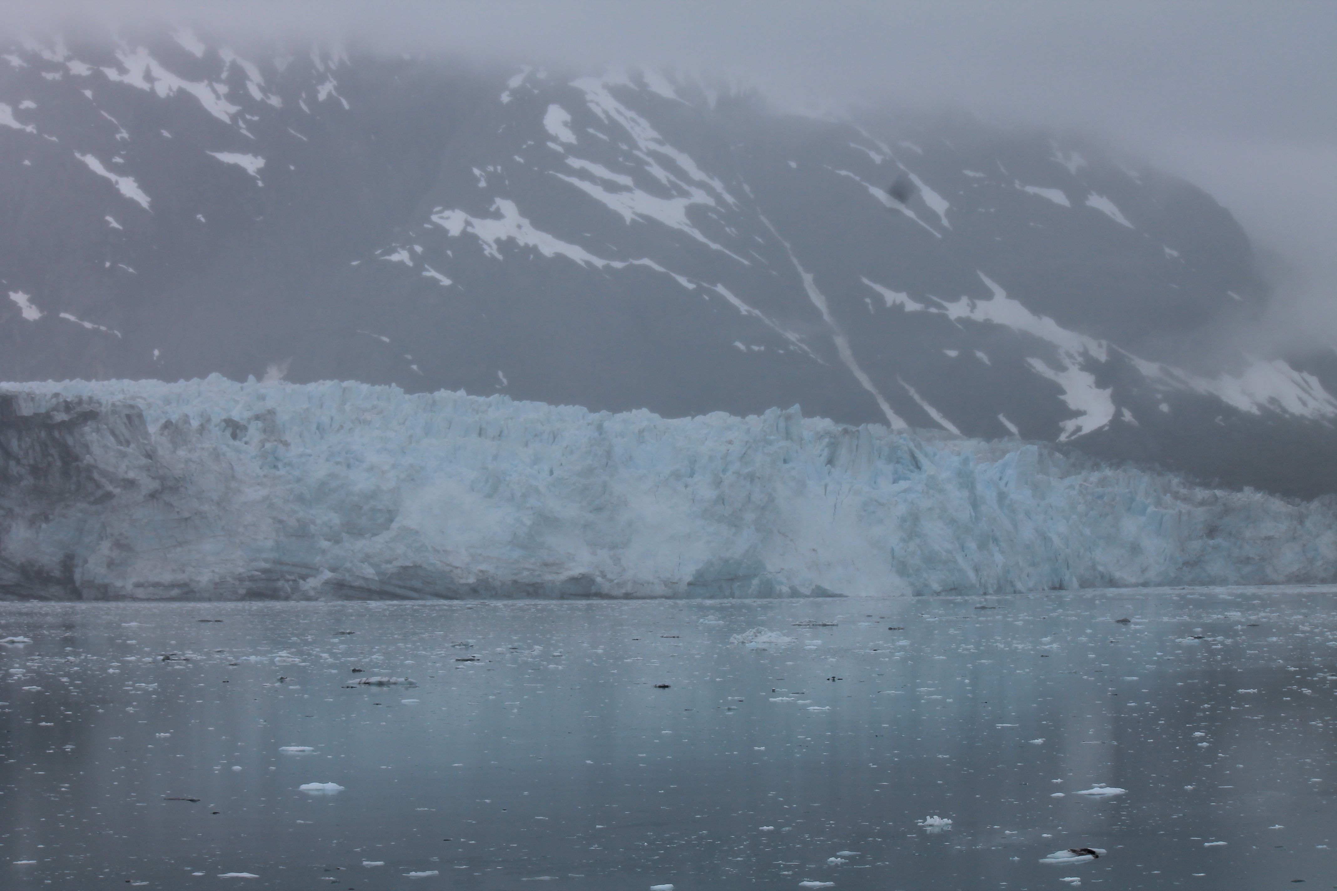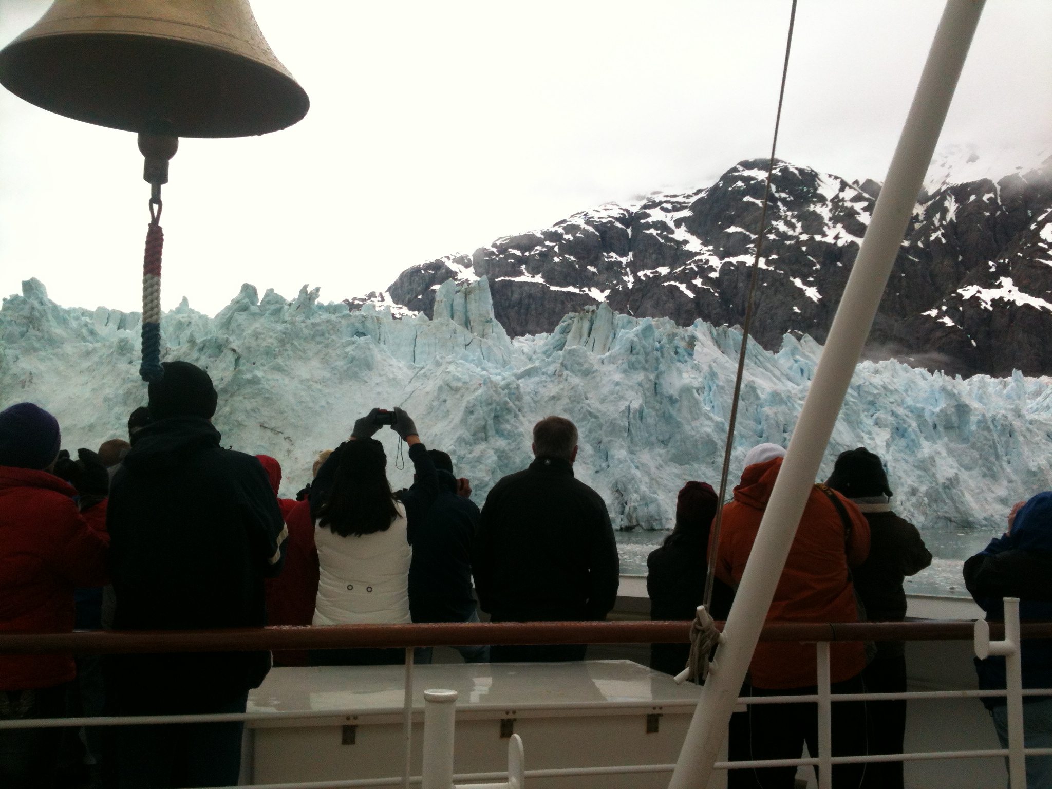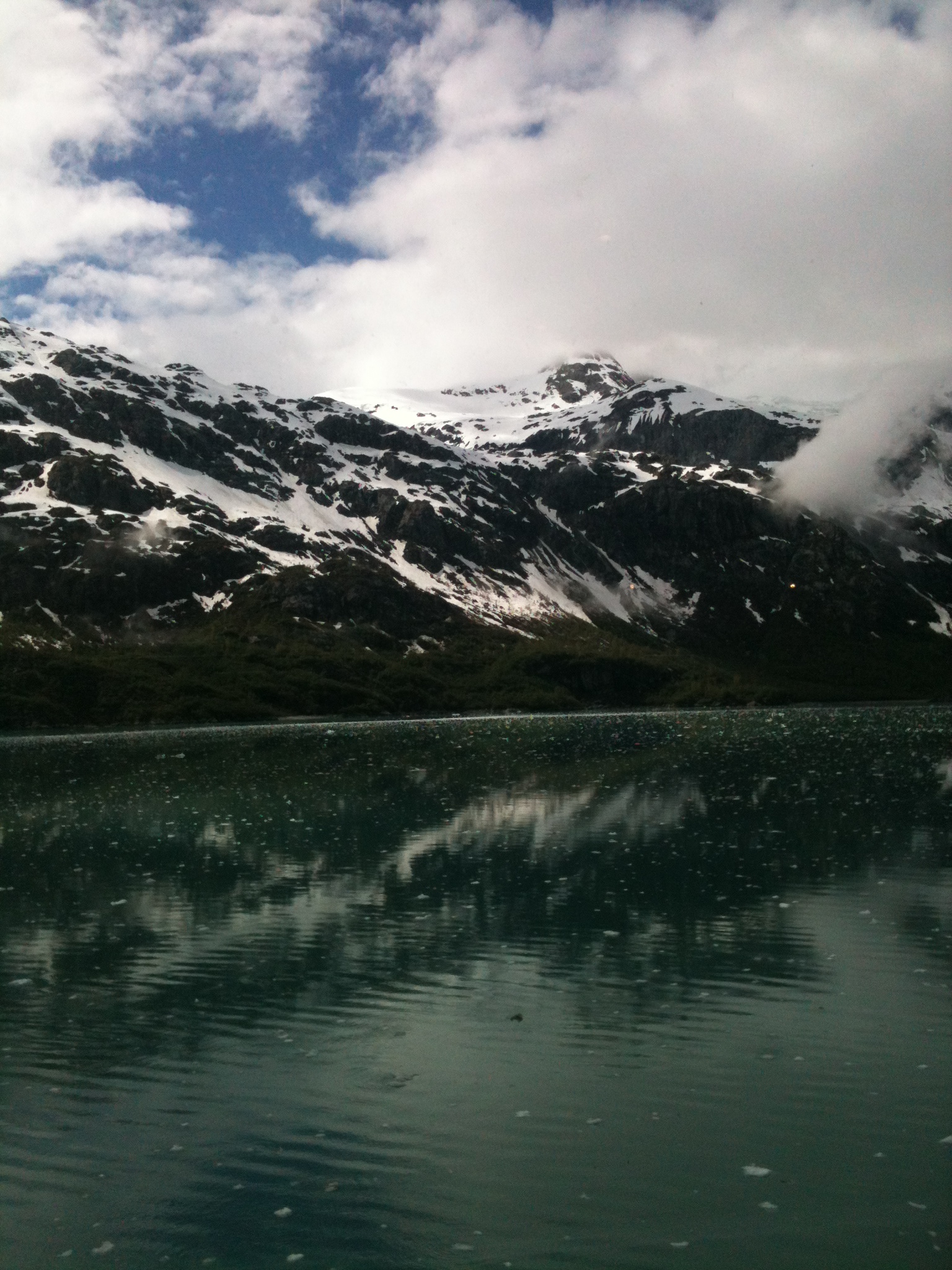 Giving a play-by-play will take up far too much space, so let me just skip to Glacier Bay. As we sailed into this unusual national park–unlike the Smoky Mountains or Washington DC for example–time stopped. The water was glass, hardly moving as our bow cut through, and it reflected the sky and mountains above it so perfectly that it was hard to tell which was solid and which illusion. Some of the pictures on my cell phone came through upside down, and the icy water looked like a starry sky above the vivid reflection of the mountains, while the actual, solid land appeared to be the watery illusion.