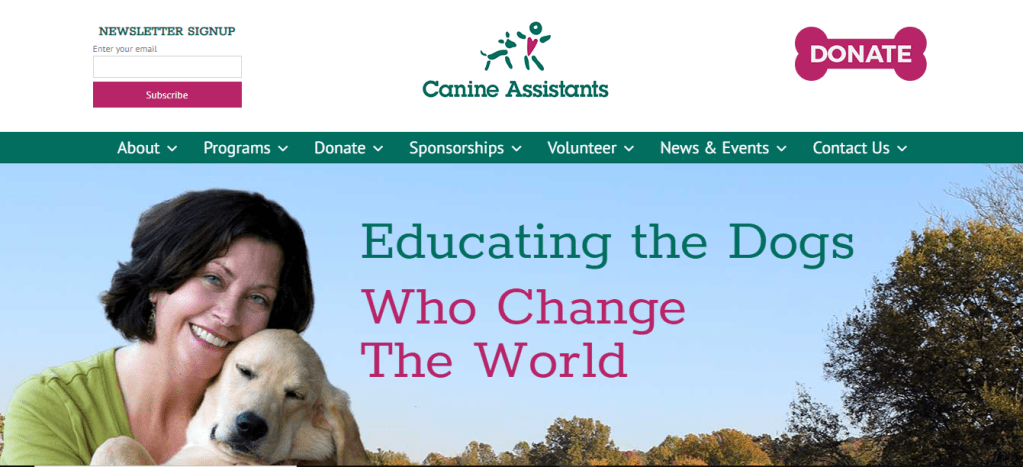 I have a friend–a very good friend–who works with an organization called Canine Assistants based in Alpharetta, Georgia. If you haven’t heard of it, don’t be surprised. They are just a small group of wonderfully kind, dedicated people who train dogs to assist people who need a little or a lot of help. My friend is one of the volunteers who takes a puppy into a home full of love and teaches him or her the basics of living with a family, plus taking this precious animal out in the world to get him or her used to the noise and activity of the world all around.