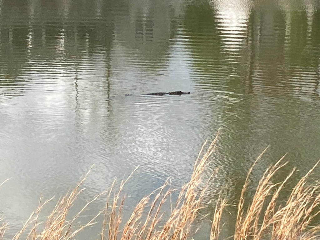 I am not afraid any more, but I am cautious. The key is respect. There is no reason for me to interact with him, or he with me. If I see him, I don’t stop walking, but I change direction to give him a wide berth. We still walk on the trails by the marshes, but we keep the dog off the bank and on a leash. As for the granddaughter, we’d keep her away from the lake even without an alligator. She can’t swim.