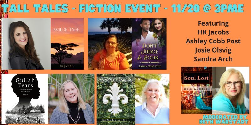 I am also honored to moderate the Tall Tales general fiction panel at the Bluffton Book Festival on Saturday, November 20, 4-5pm, immediately following the interview with headliner Jason Mott. Tickets for our event are available on the book festival website, and include a copy of Jason Mott’s book, Hell of a Book, signed by the author. It’s a webinar, so anyone can attend from anywhere. Check out the website and see what other great events are scheduled.